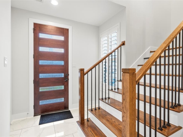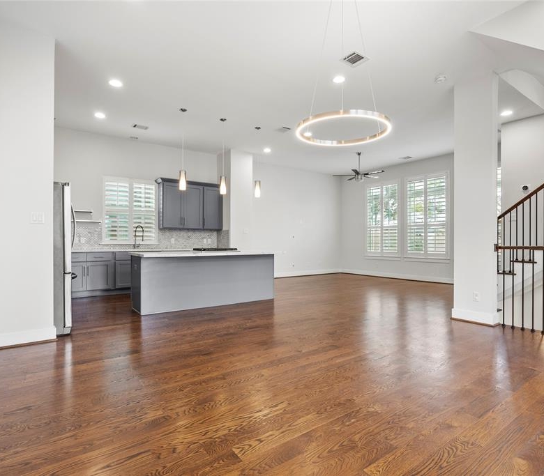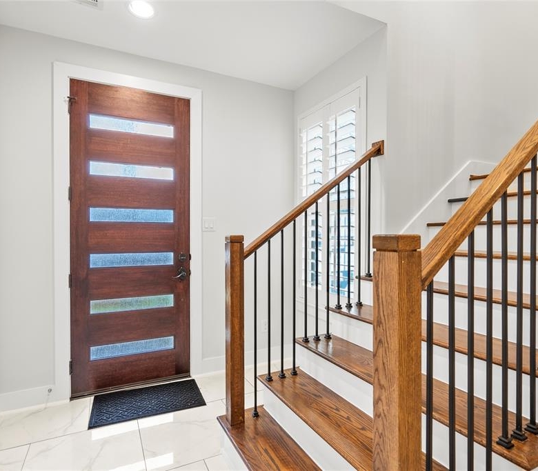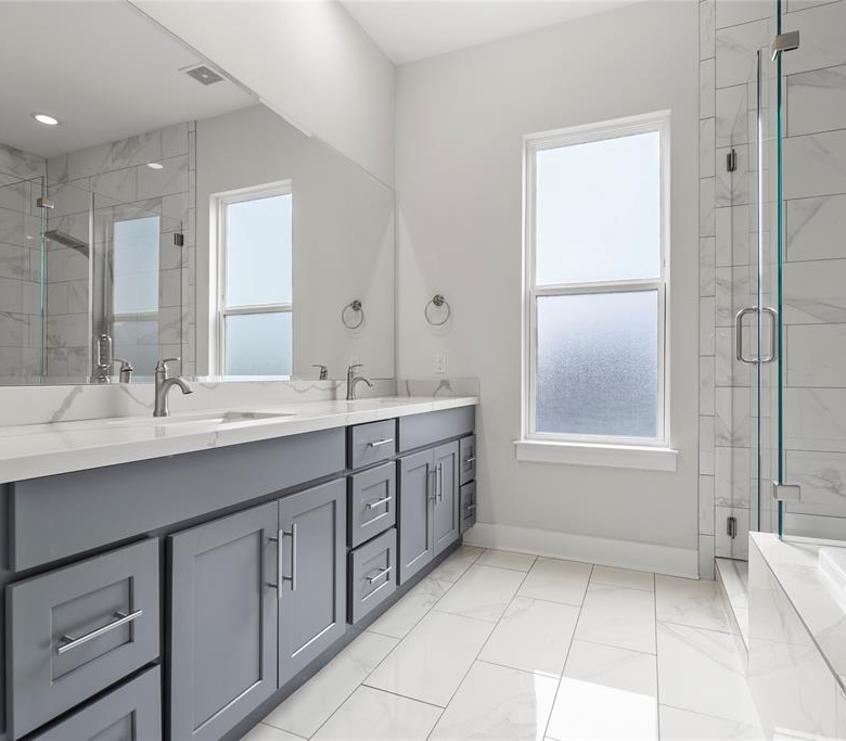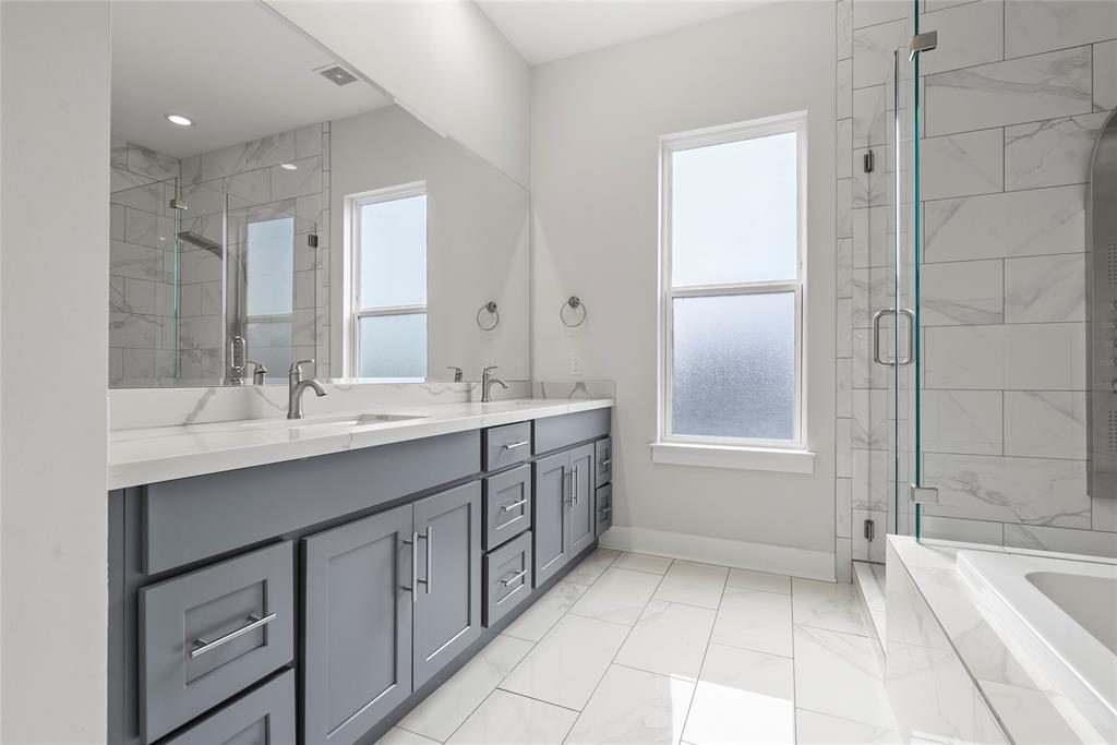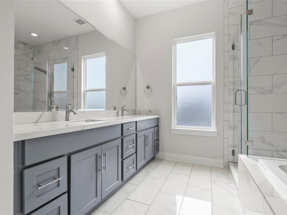 - Exceptional Finishes: Hardwood floors run throughout the open-concept second floor, while the primary suite offers a luxurious retreat with double sinks, a soaking tub, and a frameless glass shower.