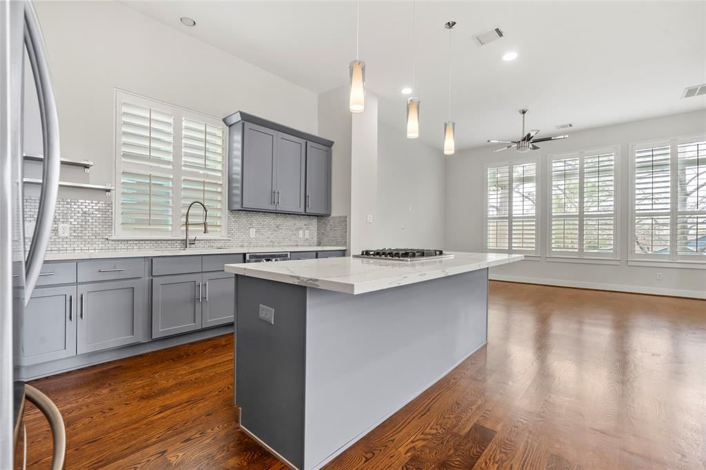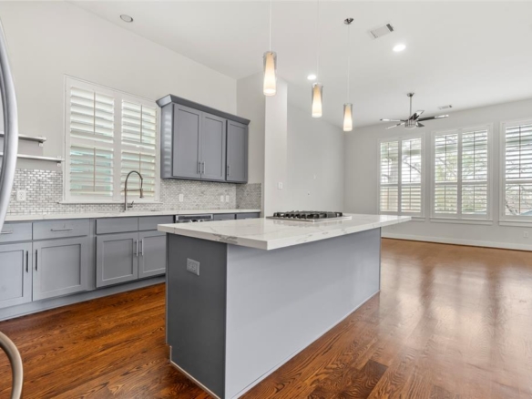 - Gourmet Kitchen: The heart of the home features a massive island with a gas cooktop, sleek quartz countertops, and soft-closing cabinetry—perfect for both daily living and large-scale entertaining.